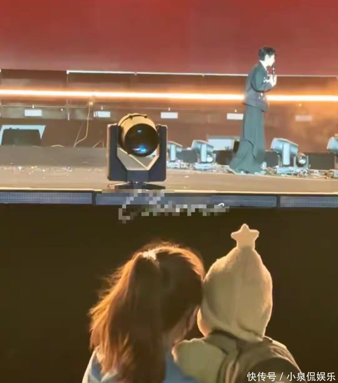 于玮当天扎着高马尾,穿蓝色上衣,怀里抱着两岁的小橙子。小橙子戴个可爱的星星帽,背着迷你小书包,小脑袋紧紧靠在妈妈肩膀上,乖乖地盯着台上唱歌的爸爸,既温馨又能看出孩子对爸爸的崇拜和依赖,网友都说:“这才是真正的家庭后盾啊!”